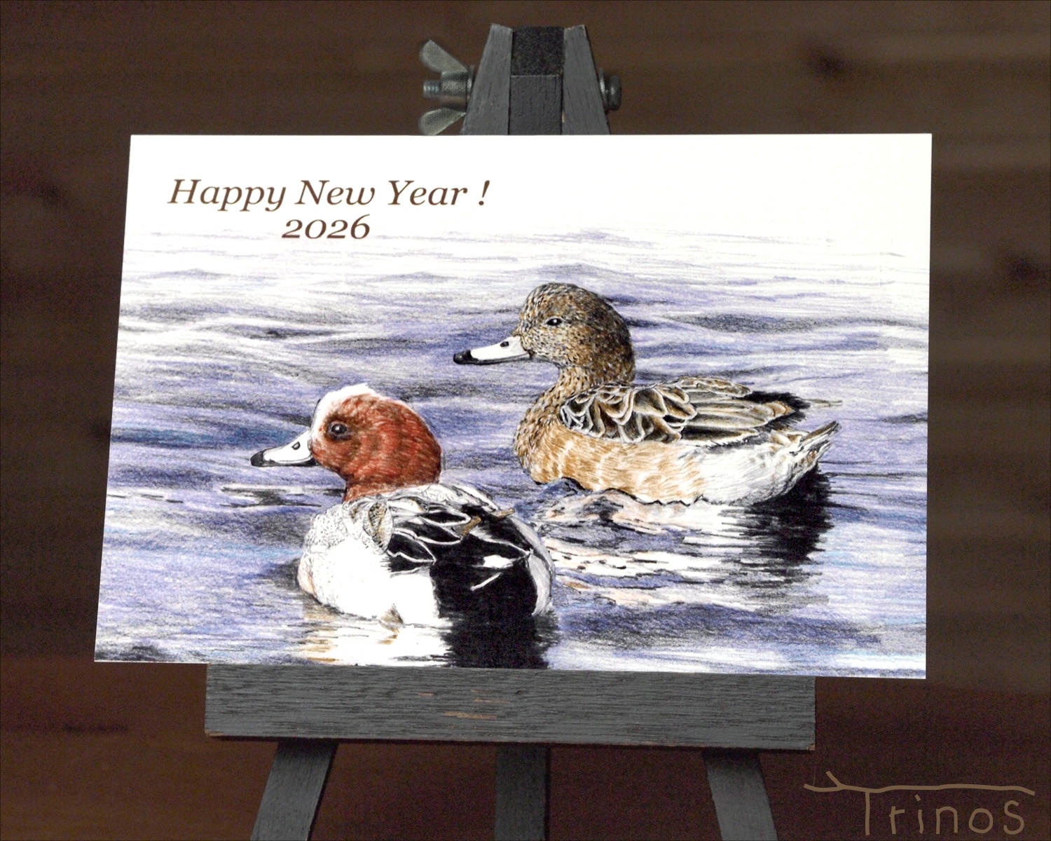 冬の水面を泳いでいる、愛らしい年賀状です!